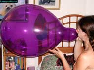 Lena starts off her latest video by letting the viewer know, "The only thing I love more than being surrounded by big balloons, is bursting balloons". Starting off with her hair in pigtails and lying on her bed, Lena does a bit of riding and squeeze popping before putting her puffy cheeks to work blowing to pop a polka-dotted Qualatex. Lena is very playful while riding, squeezing and blowing to pop her balloons. She loves talking to and telling them how happy she gets when they burst for her. All this laughing, giggling and popping makes Lena a bit hot and horny, so the clothes have to come off. After some rapid blow to pop action using the pump, Lena sits on a balloon to relax, and for fun squeeze pops a few more balloons over her head before putting her cheeks and lungs back to work. Some blowing, than hugging, followed by more blows and than some talking to the balloon, Lena really enjoys making the most out of the blow to pop experience. By the time the last exhale causes an explosion of shards, Lena is very satisfied. After one more blow to pop, Lena lets her hair down and puts on some sexy red, thigh-high boots with stiletto heels to get fine tuned for more popping. The heels, especially, turn out to be quite the fasion accessory, and are used very efficiently by Lena for puncturing the tight, thin, latex of the balloons. Soon though, it is back to some rapid inflation to popping using the pump. Lena just loves the sound of the rushing air filling the hollow sphere of the latex, followed by the ear-shattering booms that result. However, nothing beats the feel of a good blow to pop using her own lung power, where she savors every moment as the balloon gets bigger with every blow right up to the big bang. And a Qualatex Spray with fireworks, will sound just like a bomb went off. Be sure to click on the film reel below for a sample clip from the video that will blow your mind.